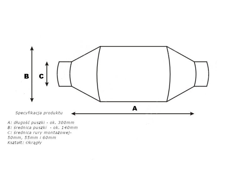 Katalizator uniwersalny okrągły do silników o pojemności od 1200 do 3000ccm