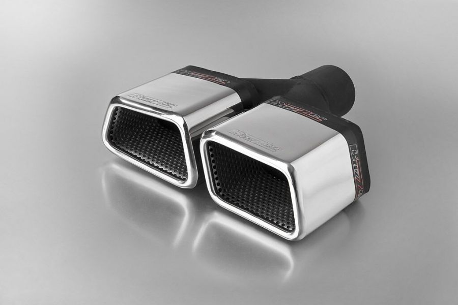 Końcówka sportowa podwójna o kształcie rombu i załamanego rombu. Do montażu po prawej stronie samochodu.Dedykowana do mercedesa AMG
